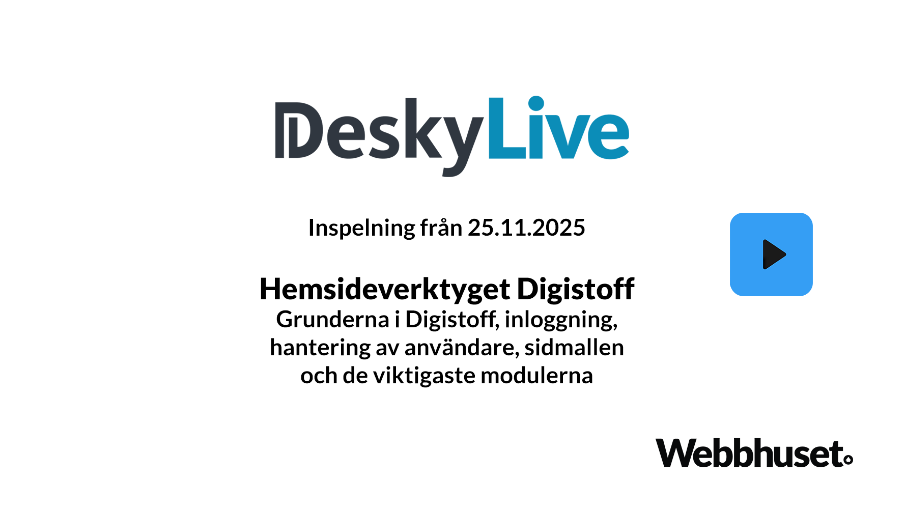 Höstens fjärde Desky Live ordnades den 25.11.2025 med tema Digistoff, Webbhusets hemsideverktyg. Vi hade över 60 deltagare med online vid detta första i en serie Desky Live om Digistoff.